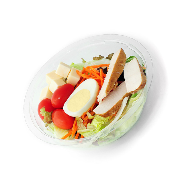 ° Ingredientes: Lechuga Iceberg, Morada o Romana, Zanahoria rallada o en bastones, Pollo grillado, Huevo duro, Queso tybo, Tomate cherry.